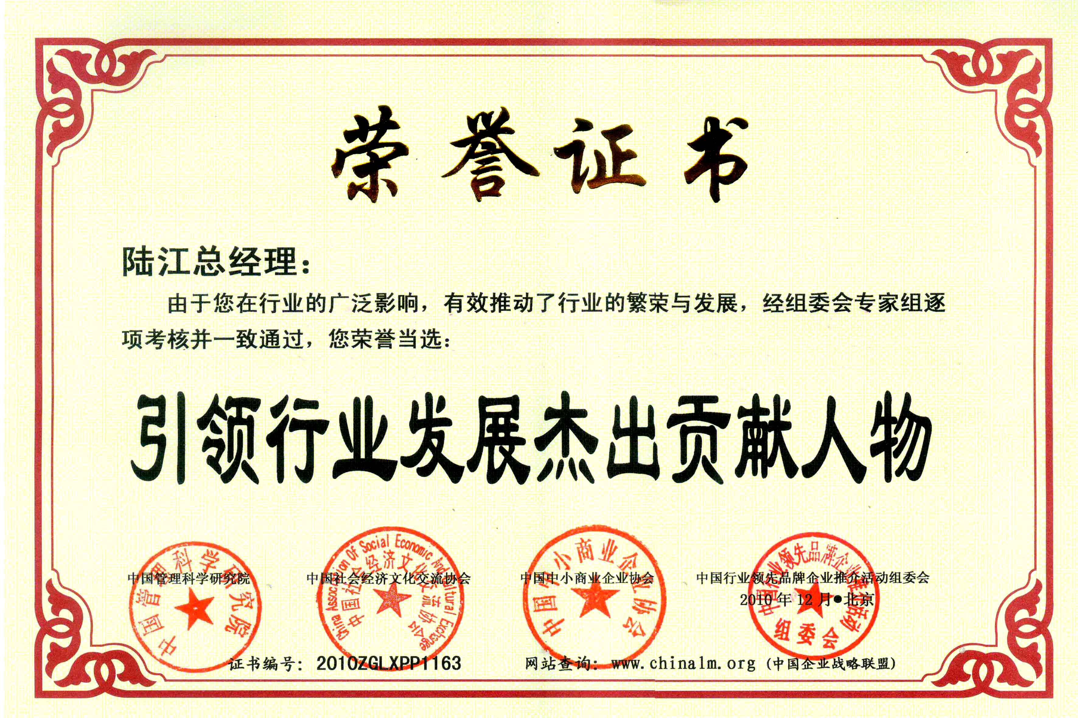 陸江榮獲引領(lǐng)行業(yè)發(fā)展杰出貢獻(xiàn)人物證書 --------卓康公司榮獲全國(guó)質(zhì)量、服務(wù)、信譽(yù)AAA級(jí)品牌證書